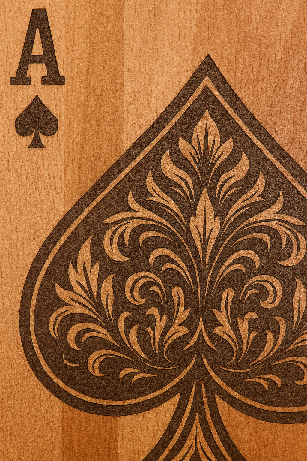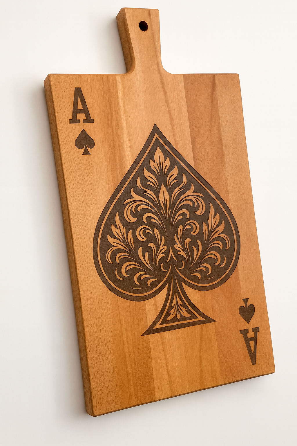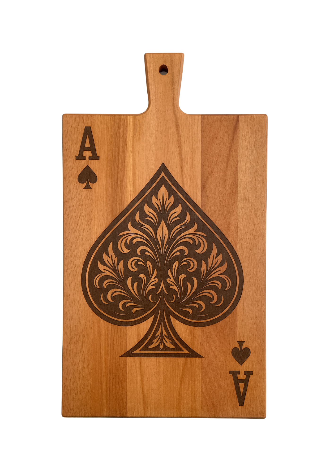 Snijplank 'Schoppen Aas' – Borrelplank van Beukenhout met Gravure – Oakman Objects